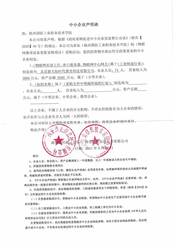 附:西安浩先信息技术有限公司中小企业声明函