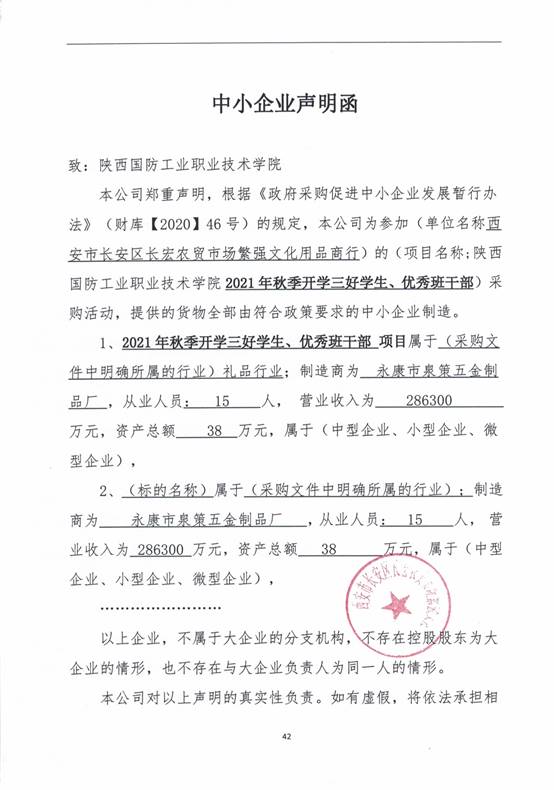 附:西安市长安区长宏农贸市场繁强文化用品商行中小企业声明函