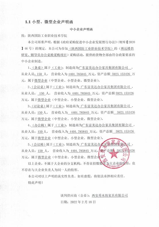 成交单位:西安秀木坊家具有限公司(小微企业)