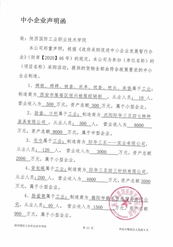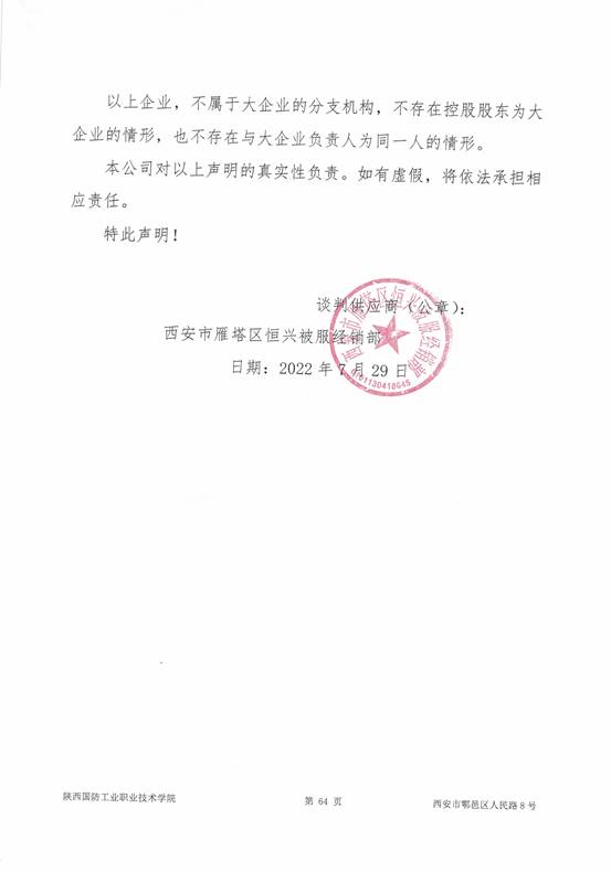 附:西安市雁塔区恒兴被服经销部中小企业声明函