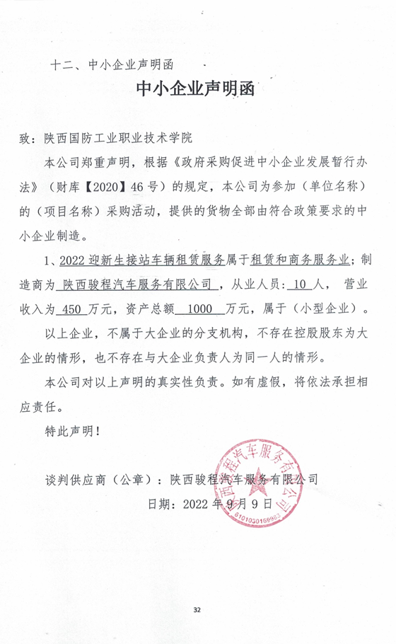 陕西骏程汽车服务有限公司中小企业声明函