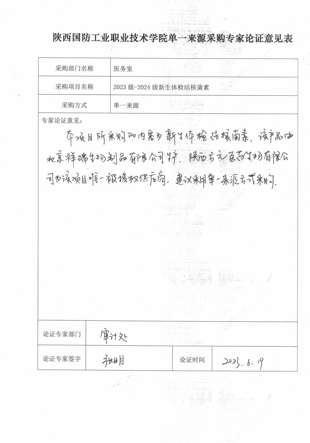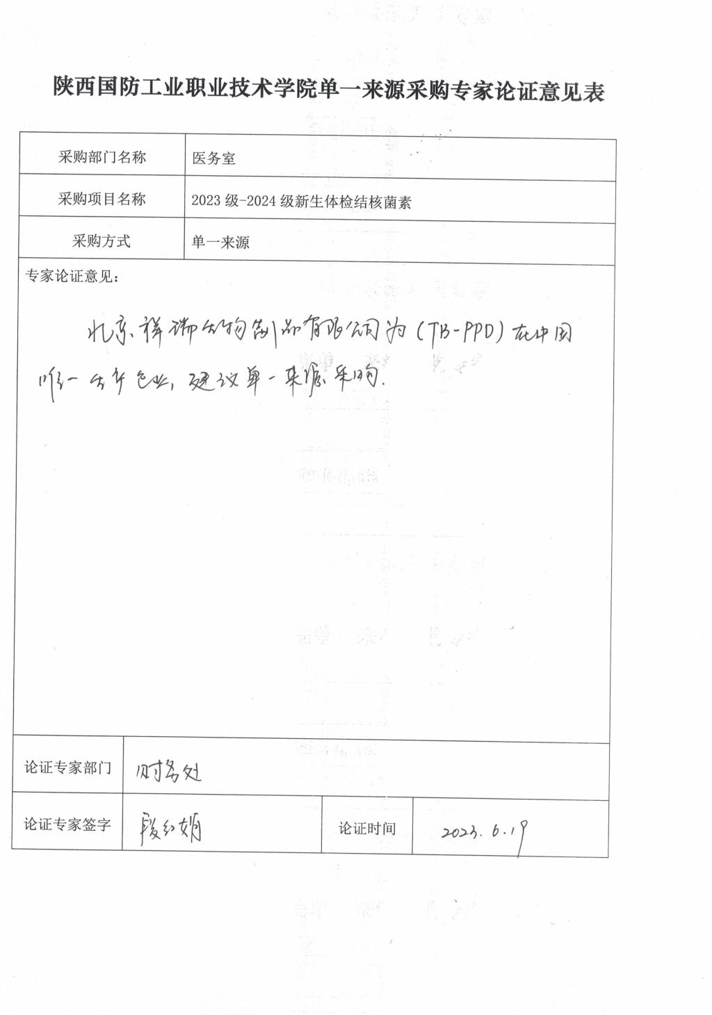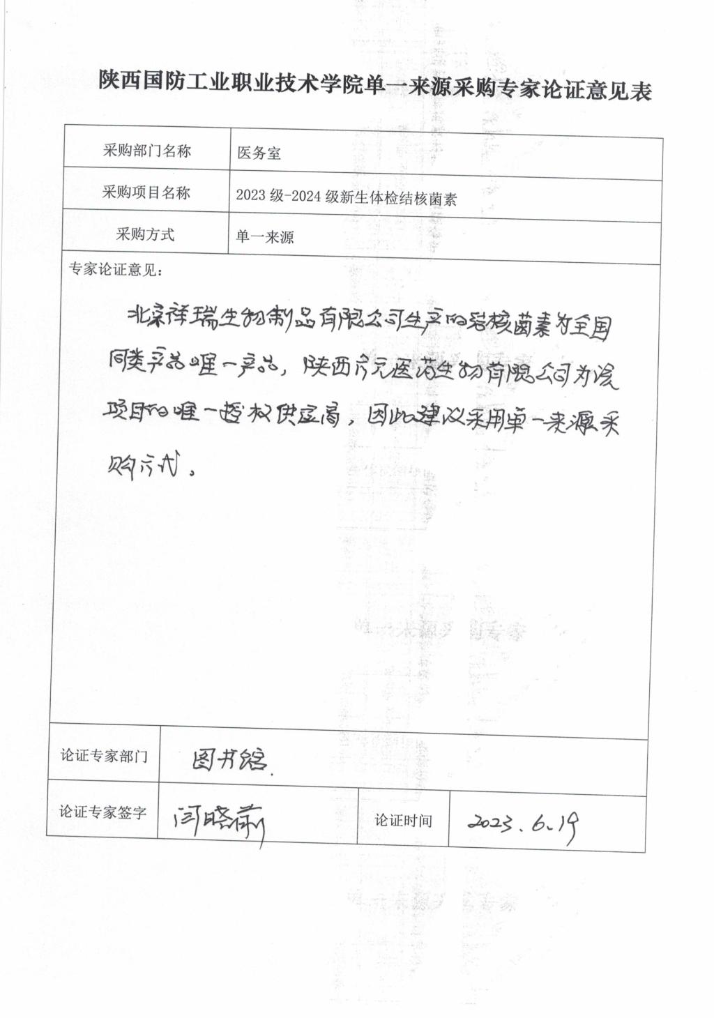 采用单一来源采购方式的原因及说明:18新利苹果客户端新生体检结核菌素采购项目,该制剂目前在全国只有一家生产企业,为北京祥瑞生物制品有限公司,陕西方元医药生物有限公司为该项目在陕西的唯一合法委托代理人,为保证新生体检要求,有效防止肺结核的传播,拟采用单一来源方式采购。