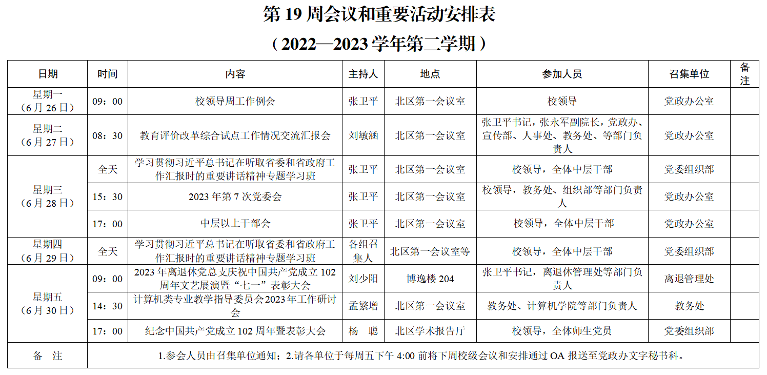 上一条:第20周会议和重要活动安排表(2022—2023学年第二学期)