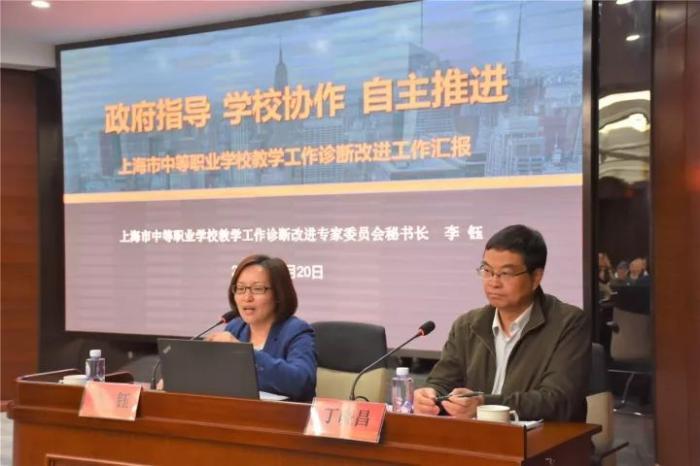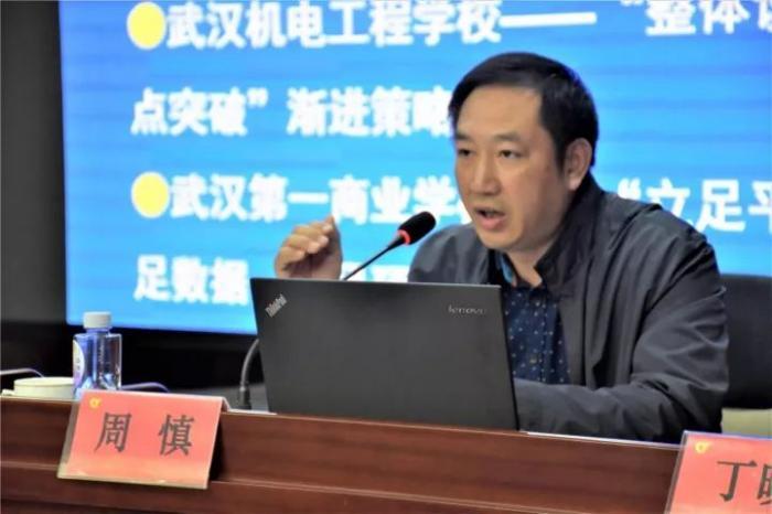 全国诊改专委会副主任、天津市第一商业学校校长郭葳,全国诊改专委会委员、广东省教育厅职业教育与终身教育处调研员吴艳玲,上海市教育评估院职成教评估所所长李钰,全国诊改专委会委员、武汉铁路职业技术学院副院长周慎分别代表各自所在中职试点省市区发言。