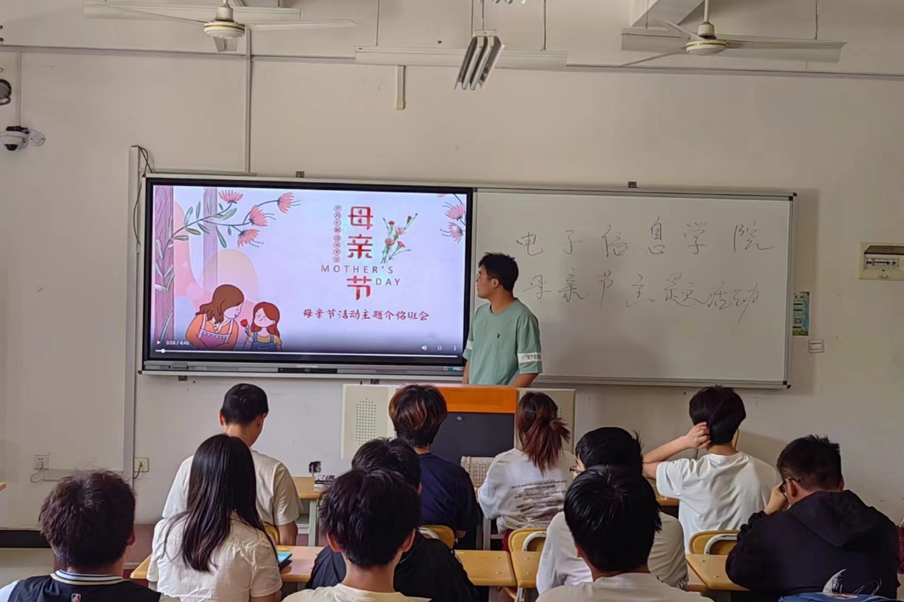 2024年5月11日下午,电子信息学院举办了一场别开生面的“母亲节”主题活动。本次活动旨在弘扬和传承中华孝道文化,营造感恩母爱、关爱母亲、回报母亲的良好氛围,鼓励同学表达对母亲的爱和感激之情。