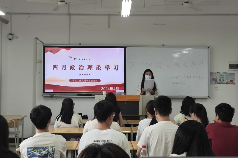 【新利体育官方网站党委学生党支部】我校新利体育官方网站党委学生党支部于4月24日17:30在北校区4-133教室开展四月份政治理论学习,其中,学生党支部2023秋季积极分子、预备党员、正式党员,2023年春季积极分子、预备党员共计113人,通过线上和线下相结合的方式参与了本次理论学习。会议由学生党支部宣传委员贾琬朝主持。