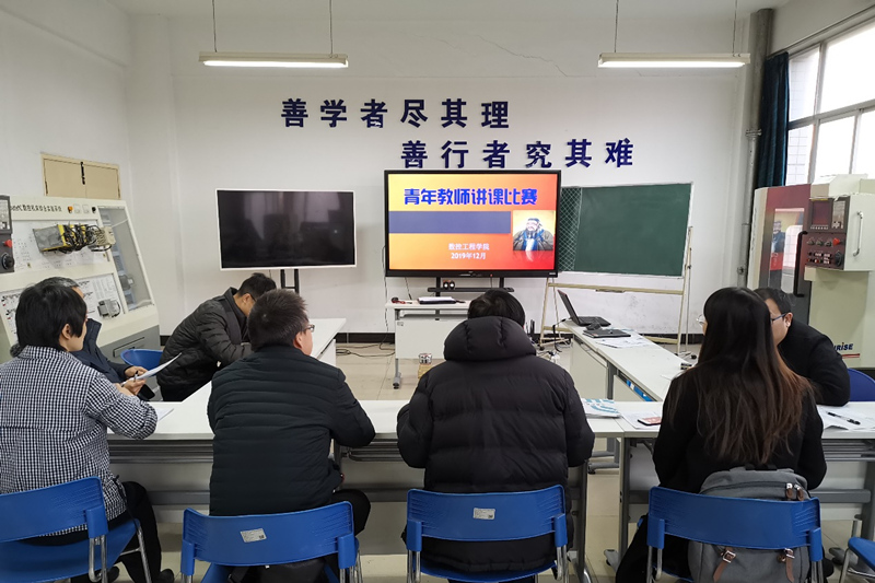 为深入学习贯彻习近平新时代中国特色社会主义思想,认真落实《关于全面深化新时代教师队伍建设改革的意见》,进一步提升广大青年教师的教学能力和业务水平,搭建教师教学经验交流和教学风采展示平台,同时为学校青年教师教学能力竞赛选拔优秀教师,数控工程学院于2019年12月05日在5-204举行了2019年青年教师讲课比赛分院选拔赛,分院党总支书记赵熹、各专业带头人、骨干教师、往届获奖教师、参赛教师、观摩教师共16人参加了此次选拔赛。