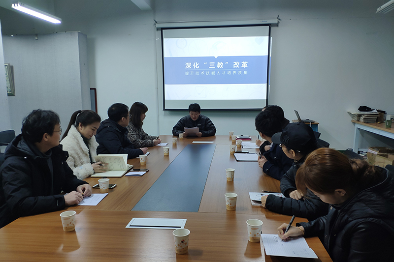 会上,房强老师带领全体老师认真学习了《教育部关于印发孙春兰副总理在全国深化职业教育改革电视电话会议上的讲话的通知》《深化“三教”改革 提升技术技能人才培养质量》,《<人民日报》中的《深刻认识“课程思政”的时代价值》和《课程思政的价值内涵与实践路径探析》等文章。