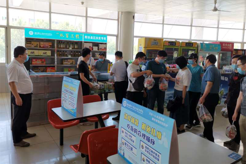 为响应学校号召,6月5日,党政机关党总支书记殷兴光组织支部教职工和党员参与采购。党政机关总支共三十余名名教职工参加扶贫产品的采购,采购分为两组:第一组为政工党支部,包括组织部、宣传部、纪检监察处、工会的党员和教职工,上午集合后前往食堂二楼进行采购。第二组为行政党支部,包括党政办、人事处、财务处、教师发展中心的党员和教职工,下午集合后前往食堂二楼进行采购,教职工佩戴好口罩统一由食堂南门进入到达采购地点。采购过程中各位教职工和党员积极踊跃购买,既满足了自己的物质生活所需也为脱贫攻坚贡献了自己的一份力量。