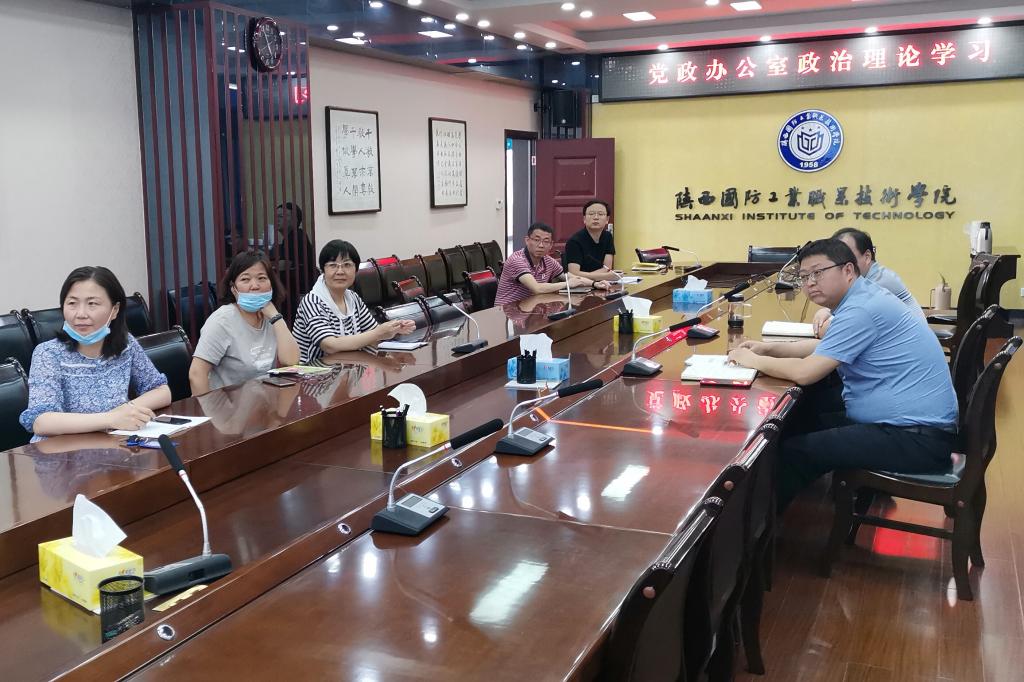 2020年6月5日下午,党政办公室召开会议,传达学习习近平总书记来陕考察重要讲话重要指示精神。会议由党政办公室副主任姚飞鸣主持。