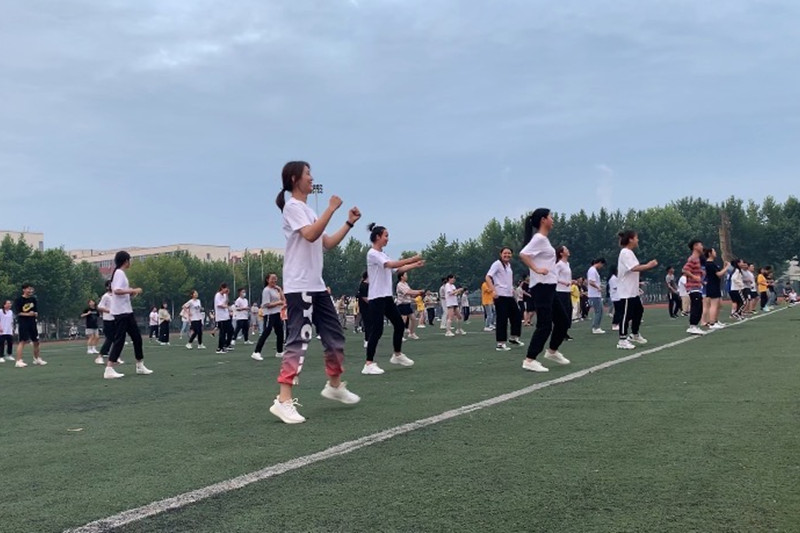 6月19日下午7:30,在我校田径场开展以“青春不停‘动’ 健康伴我行”为主题的健身操活动。全校共10个二级学院参加。本次活动由体育部李娟、王国超、石渔3位教师担任教练。体育部部长王茂利出席活动并讲话,希望学生们在老师的引导下,根植“强身健体对己负责”观念于心中,真正做到学习、运动两不误,愉快度过“疫”期。