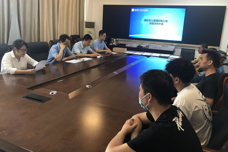7月21日,南区餐厅操作间吊顶改造工程项目;北区物业、离退房屋彩钢顶棚改造;北区雨污分流改造工程;南校区公寓楼粉刷工程和生手册采购项目招标会在北区图书楼第三会议室召开,会议由资产管理处赵二庆主持。资产管理处潘冬处长参加招标采购会议。