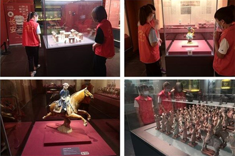 接着,实践团队分别参观学习了青铜展、“唐三彩”展、玉器展,并对一些独具特色的文物发表了各自的看法,大家各抒己见,感受着中国文化的历史变迁和时代魅力。正如习近平总书记考察西安博物院时说,一个博物馆就是一所大学校。在这个集古代文物、建筑与现代化展馆于一体的国家一级博物馆中,队员们可以读到周秦汉唐的辉煌,感受中华民族绵延不绝的文脉。
