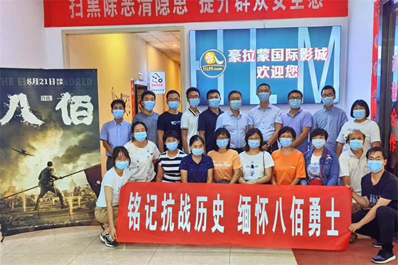 电影《八佰》再现了1937年淞沪会战期间中国国民革命军第三战区88师524团的一个加强营(史称八百壮士),坚守上海四行仓库、狙击日军的可歌可泣故事。两个半小时的影片,大家一次次被“八百壮士”的英雄壮举以及跌宕起伏的故事情节、鲜明生动的人物形象所震撼,被热血沸腾的家国情怀与民族大义所振奋,更有不少同志在观影过程中情不自禁流下热泪。