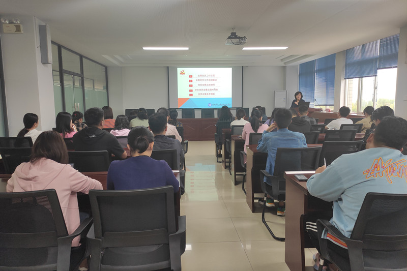 为了更好地开展2020年秋季党员发展工作,增强后期党员发展工作的针对性和实效性,9月27日下午,新利体育官方网站党委在招生就业处宣讲厅组织召开了2020年学生党员发展培训会。各院部书记、负责党建工作的老师及学生干部60余人参加了会议。会议由新利体育官方网站党委副书记陈正权主持,特邀经济管理学院党总支书记王文雅做培训。