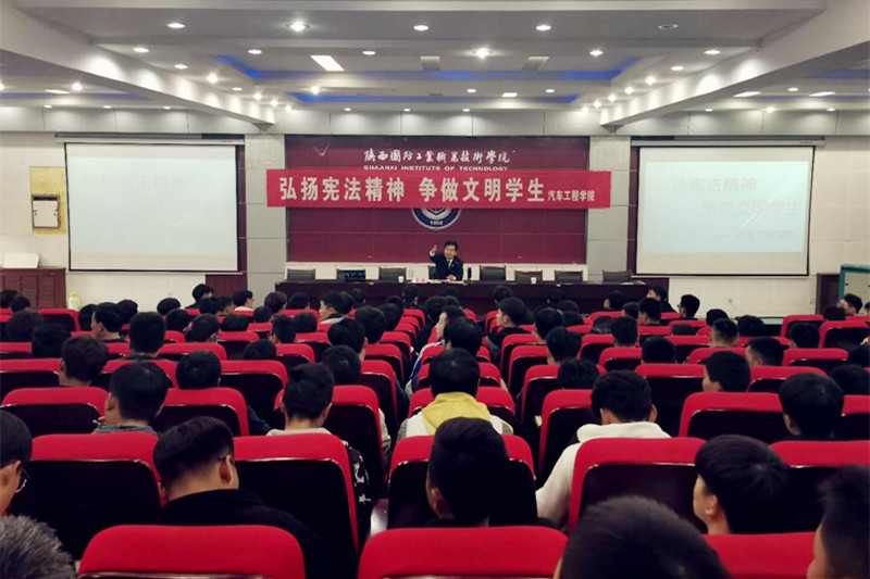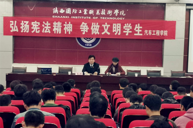 宪法是国家的根本大法,是治国安邦的总章程,也是我们每个公民应该遵守的行为准则。为积极践行宪法日宣传教育活动,大力弘扬宪法精神,在全国法制宣传日即将来临之际,汽车学院党总支组织开展了“弘扬宪法精神,争做文明学生”的专题讲座,积极营造学法、知法、守法、尊法、信法、用法的良好氛围。