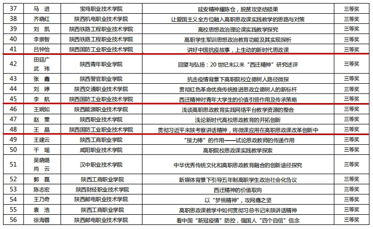 为了深入学习贯彻习近平总书记来陕考察重要讲话精神,进一步传承延安精神、西迁精神、梦桃精神及全国人民在抗击新冠肺炎疫情中所表现出的舍身忘己全力以赴的精神和家国情怀,着力推进陕西高职院校理论研究和思政课教学质量再上新台阶,思想政治理论课教育教学指导委员会组织开展了“贯彻习近平来陕考察讲话精神,推进新时代高职思政课改革创新”为主题的征文活动。征文对象为从事思想政治理论课教育教学的专兼职教师,征文时间为2020年5月31日至 9月10日,每所院校推荐3-5篇论文。