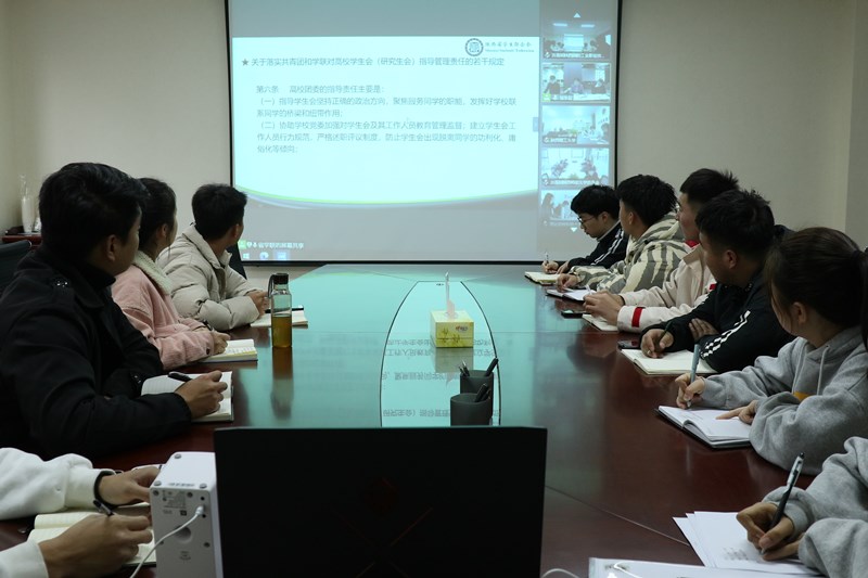 11月20日,陕西省学生联合会召开委员单位(扩大)会议。校团委、指导教师及校学生会主席团全体成员参加了本次视频会议。会议围绕“学联学生会组织作风建设”“规范召开学生代表大会”及“贯彻落实全国学联二十七大精神”三个方面,向各高校学生会组织做了明确部署安排。