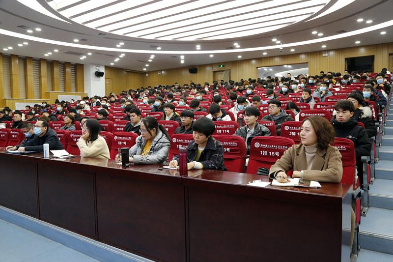 宪法是国家的根本大法,具有最高的法律效力,是国家各项制度和法律法规的总依据,规定国家生活中最根本最重要的方面。今年是第7个宪法宣传日,为进一步加强宪法宣传教育,引导大学生树立法律意识、维护法律权威、弘扬法治精神、培养法治思维。12月4日下午,马克思主义学院联合西安市鄠邑区人民法院在教四报告厅组织开展了“宪法宣讲进校园”专题活动。此次活动特别邀请到鄠邑区法院办公室主任明培尧和鄠邑区法院执行指挥中心法官谭飞作为主讲人,马克思主义学院常务副院长吴娟、工会主席解辉和数百名师生参加了此次活动。