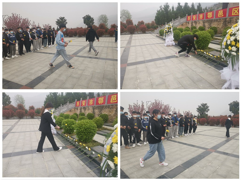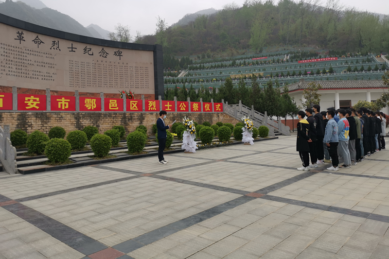 为缅怀革命先烈的丰功伟绩,寄托对革命先烈的无限哀思,弘扬革命先烈的崇高精神,引导教师和青年学子学习革命先烈英勇事迹,继承先烈遗志,凝聚奋进力量, 3月30日下午,我校马克思主义学院组织思政课教师和学生共计30人,前往西安市鄠邑区金南山烈士陵园开展“传承先烈遗志 弘扬革命精神”清明祭扫活动,祭扫活动由马克思主义学院办公室主任皮睿主持。