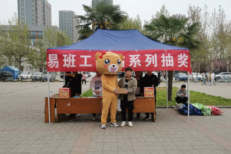 此次抽奖活动经过前期的精心准备,吸引了众多学生积极参与,同学们排着整齐的队伍依次抽取属于自己的奖品。还向来往的人群宣传和介绍这次的活动。来来往往的学生都被易班熊所吸引,争先与他合照留念,现场气氛十分活跃,参与活动的热情极高,活动现场热闹非凡。
