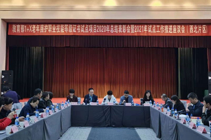 4月1日,经济管理学院院长严长远教授、办公室主任李志春、智慧健康养老服务与管理专任教师梅姣姣三位老师应邀参加教育部1+X老年照护职业技能等级证书试点项目2020年总结表彰会暨2021年试点工作推进座谈会(西北片区)。会议由1+X老年照护职业技能等级证书陕西考评站站长徐岷利院长主持,中国社会福利与养老服务协会会长、老年照护职业技能等级证书试点项目推进组组长冯晓丽,协会常务副秘书长、北京中福长者文化科技有限公司总经理陈东升,副总经理曹雪出席会议,参加会议的还有西北地区各中高职院校教师代表50余人。