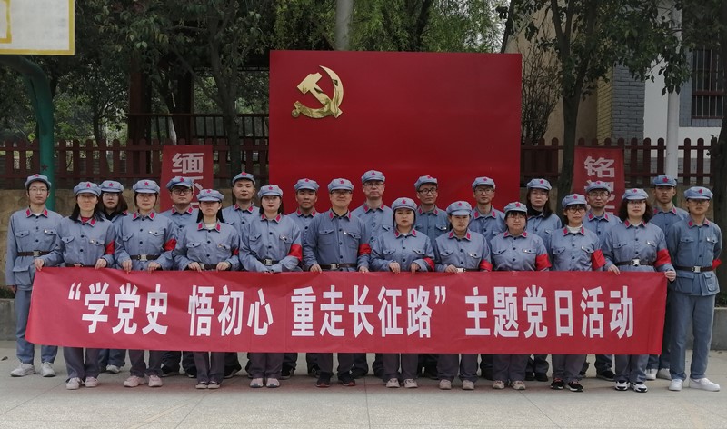 活动伊始,全体师生党员身穿红军服,头戴红军帽,佩戴党徽,队列整齐划一,在总支书记孟龙同志带领下,面对鲜红的党旗重温入党誓词。党员同志们高举右拳,庄严宣誓,用铿锵有力的誓言彰显“不忘初心、牢记使命”的坚定政治信念,鞭策和激励自己勇于担当、扎实工作,为共产主义事业奋斗终身的理想信念;紧接着,同志们合唱了经典红歌《没有共产党就没有新中国》;之后,孟龙、李斌、汤春妮、曹赟四名支部书记为全体党员讲党史故事。随后,在讲解员的带领下,大家怀着对革命先烈无比崇敬的心情参观了红军长征过境户县陈列馆。陈列馆展出了红二十五军、红四方面军、红七十四军在长征过程中经过户县的史实。一个个生动鲜红的革命故事,体现了老一辈无产阶级革命家艰苦奋斗、百折不挠、坚持真理的精神。广大党员跟随讲解员一起回忆历史情节,在红色精神的感召下,灵魂深处经历了深刻的思想政治洗礼,真切感受到革命先烈不怕苦、不怕难、不怕牺牲的精神,以及户县乡党和过境红军们的军民鱼水深情。