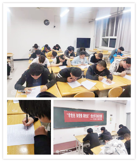此次竞赛以党章党规、系列讲话和党史等为主要内容,题型全面具体,涵盖广阔,具有很强的现实性和针对性,竞赛以试卷作答的形式进行,题型分别有单选题、多选题、判断题、简答题四个部分。比赛中,同学们认真思考,积极应答,态度认真,均能发挥出自己的最好水平。此次比赛根据答题的情况最终会评选出一等奖1名,二等奖2名、三等奖3名和参与奖5名,以此更好地激励了大家学习党建知识、参加党建活动的积极性。