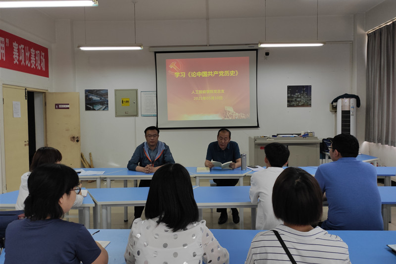 根据陕国职党发〔2021〕6号《关于印发《开展党史学习教育实施方案》的通知》。人工智能学院于5月10日下午17:00在8-208开展全体党员五月份第一次党史学习,会议由人工智能学院党总支书记张双琦主持,人工智能学院院长姜鑫同志同全体教工党员出席了本次会议。