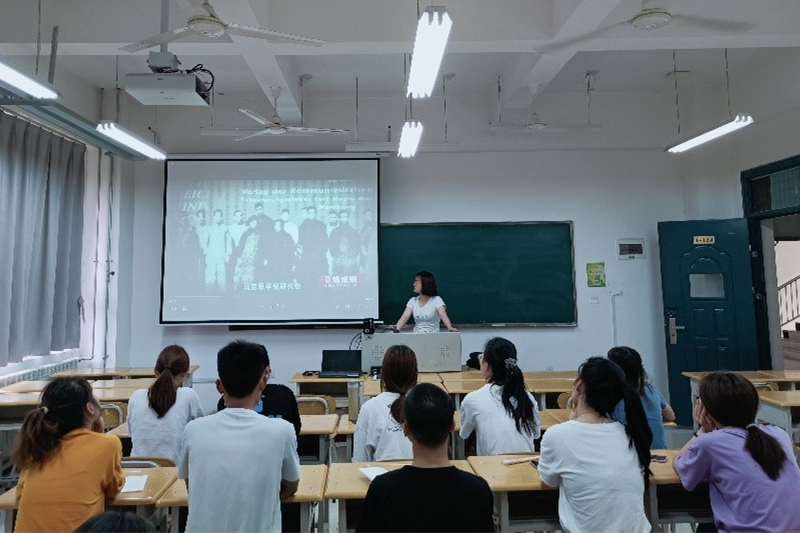 首先,全体人员观看视频《百炼成钢——中国共产党的100年》第一集亢慕义斋,通过观看视频使学生党员们深刻了解到在亢慕义斋这样一个具有特殊意义的地方,马克思主义之火被点燃,李大钊、毛泽东等一批优秀思想的革命者在这里孕育而生。