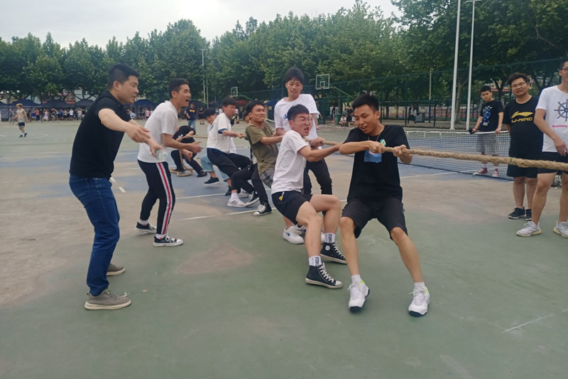 全体参赛队伍共有10支,随着比赛哨声的吹响,活动如火如荼的陆续进行,“跳大绳”比赛中,随着大绳的摆动,参赛同学们分批次随绳而动,节奏一致,动作整齐,上下跳跃,既锻炼身体,又考验协作精神。在“两人三足”比赛中我们看到队员们肩并肩,手挽手,迈着坚定的步伐向终点逼近,风雨无阻,同舟共济。“扭转乾坤”比赛中,参赛同学们心往一处想,力朝一处使,为了集体荣誉去拼搏。“拔河”比赛中,队员们呈现出来的是团结一致的凝聚力,他们那齐心协力精神拨动在场每一位观众的心弦。