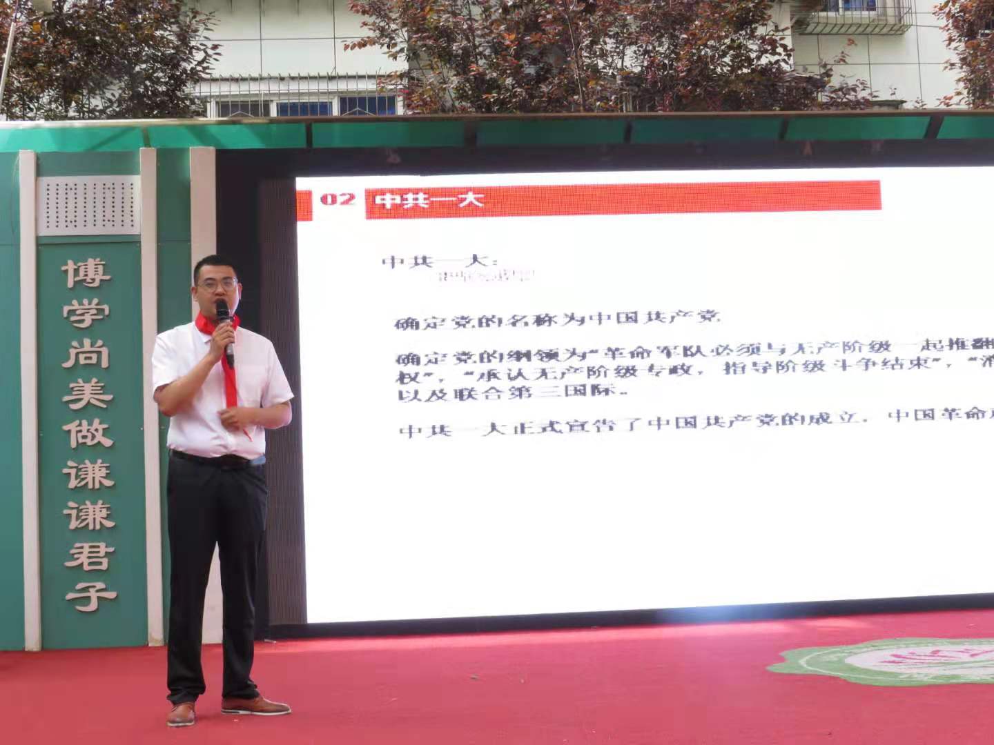 张贺以“党的诞生——中国共产党人的初心和使命”为主题,用形象生动案例、通俗易懂的语言从中国共产党成立的历史背景、具体过程和重大意义三方面展开讲授,突出反映中国共产党人“为中国人民谋幸福,为中华民族谋复兴”的初心和使命,并号召参加活动的同学们要从小认真学习党史,培养自身的使命担当意识,引起在场师生的强烈共鸣。
