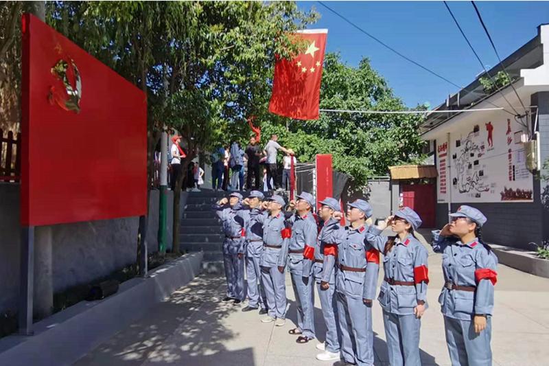 活动期间,教师们身着红军衣,头戴红军帽,队列整齐划一,进行了庄严的升国旗,唱国歌仪式。随后老师们在庄严的环境里重温入党誓词。