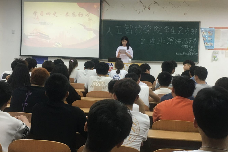 为认真学习贯彻习近平总书记关于四史重要讲话和指示精神,不断推进爱国主义教育,引导全校学生进一步坚定理想信念,传承红色基因,牢记历史使命,进一步树牢“四个意识”,坚定“四个自信”,以实际行动和优异成绩庆祝建党100周年。人工智能学院于2021年6月9日晚组织学生开展了“学四史·庆百年”系列活动之“四史”进班级演讲活动,此次活动覆盖人工智能学院所有班级。