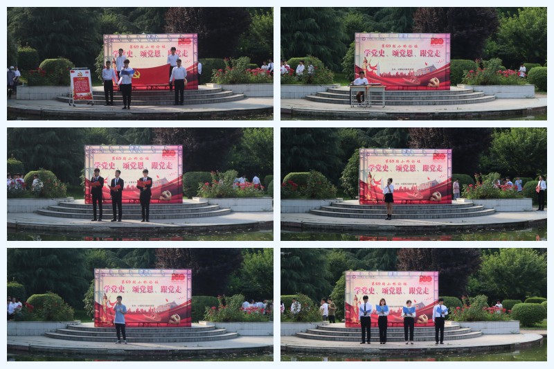 接着,开展以“学党史 颂党恩 跟党走”为主题的小桥论坛活动。第一篇章缅怀红色历史,追忆峥嵘岁月,燕西康同学的歌曲《唱支山歌给党听》,刘佳鑫等同学的朗诵《可爱的中国》,用赤诚的心曲缅怀革命先驱不朽足迹。马晨雨同学的朗诵《党在我心》,赞颂党撑起了我们民族的脊梁。乐队演唱的《中国人民志愿军战歌》,唱出了我们党的一路风雨,一路坎坷,一路凯旋。第二篇章百年约定,不辱使命,熊雅琪等同学带来的诗歌朗诵《百年约定》,让民族的精神在我们血脉中流淌。郭俊苗的古筝演奏《我和我的祖国》,为我们展现了一幅波澜壮阔的画卷,一首撼古烁今的诗篇。