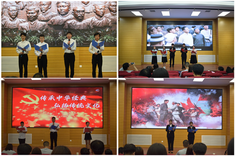 为深入学习贯彻习近平新时代中国特色社会主义思想,落实全国职教大会精神,引导广大青年学生亲近中华经典,热爱祖国语言文字,自觉弘扬中华优秀传统文化。7月5日下午由党委新利体育官方网站部主办,经济管理学院承办、各院部协办的“诵读中华经典弘扬传统文化”中华经典诵读大赛在教四报告厅举行。