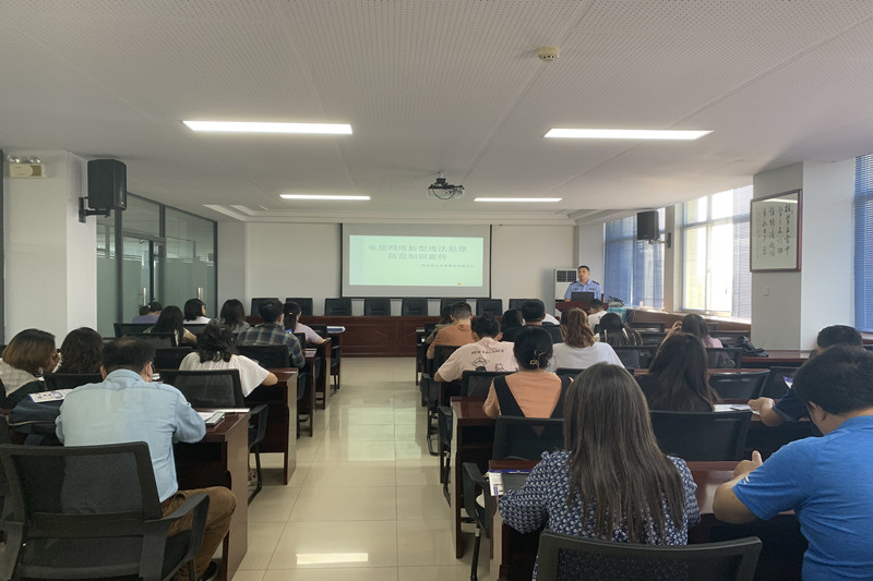 鉴于近期各高校在校大学生被骗案件层出不穷,9月10日,我校特邀请鄠邑区公安局反诈骗中心民警在招就宣讲厅为我校50余名新生辅导员培训网络新型违法犯罪防范知识。