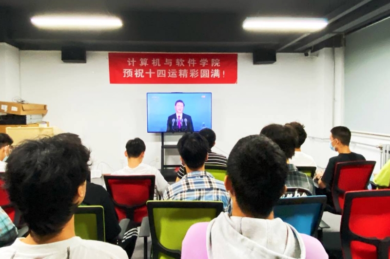 中华人民共和国第十四届运动会于2021年在陕西省举办,全运会开幕式9月15日在西安奥体中心体育场举行,闭幕式于9月27日举行。计算机与软件学院党总支书记王勃以及师生党员在腾讯云分别集中观看了全运会的开闭幕式,预祝全运会圆满成功!