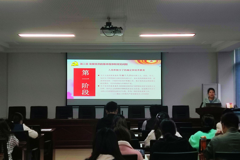 发展党员工作是党建工作的基础工程,是党支部的经常性重要工作,是党员队伍建设的重要组成部分,为了更好地开展2021年春季党员发展工作,保证后期党员的质量,10月12日下午新利体育官方网站党委在招生就业处宣讲厅组织召开了2021年秋季学期学生党员发展工作培训会。负责党建工作的老师及学生干部40余人参加了会议。