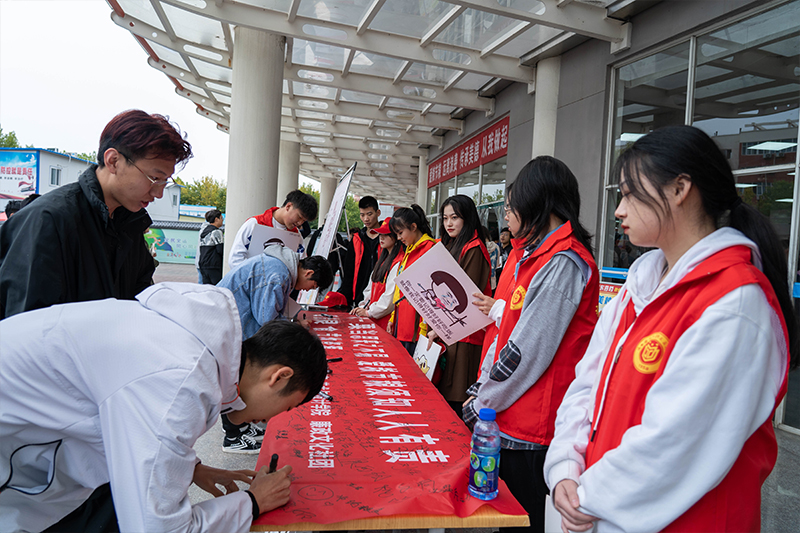 10月15日,艺术与设计学院与纪委监督检查室廉政文化社团青年学生志愿者在后勤处餐饮中心门前通过讲解、发放宣传手册、宣传单、横幅签名等多种形式向全校师生发出倡议,唤起广大师生对发展粮食和农业生产的重视,认识粮食、减少浪费、节粮减损、合理膳食;同学们还通过设计关于粮食文化、粮食安全等方面的海报向师生宣传节约粮食的重要性。后勤处餐饮中心通过横幅、海报向学生们发出倡议:每位国防学子都要践行“光盘行动”,从节约粮食做起,争做勤俭节约的传承者、实践者和引领者。