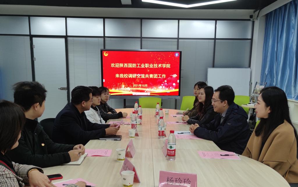 10月20日上午,我校团委书记张钊等一行4人赴陕西工业职业技术学院调研交流共青团工作。陕西工业职业技术学院团委书记赵双军等相关负责人热情接待了我校来访人员。