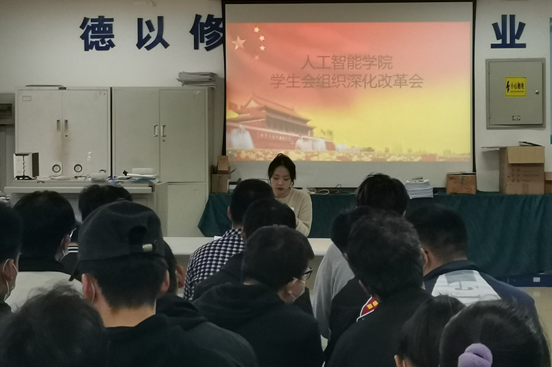 为进一步贯彻落实共青团中央和共青团陕西省委关于学生会改革有关精神,全面推进人工智能学院学生会改革,加强学生会组织建设,11月4日下午4点30分,我校在8-207教室组织开展了人工智能学院学生会组织深化改革专题培训会。人工智能学院全体学生会成员参加此次会议,人工智能学院团总支书记贾媛媛老师主持,人工智能学院学生党支书记刘沛静老师出席会议。