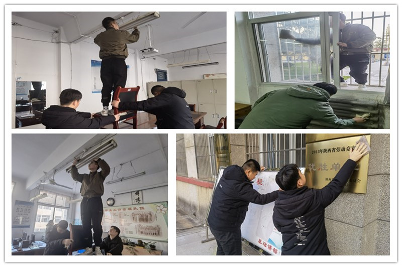 开展教室、办公室卫生革命。对教室桌椅、走廊、门窗等进行彻底打扫,做到物品摆放整齐、环境干净清新,以亲身劳动将文明卫生教育与热爱祖国、热爱校园、热爱生活相结合,引导广大学生培养其爱国之情、砥砺强国之志、实践报国之行。
