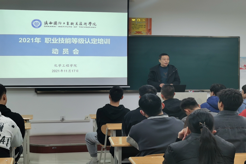 按照学校安排,为进一步落实化工总控工及1+X化工精馏安全控制职业技能等级认定工作,化学工程学院2021年11月17日下午,在教四4-440召开了化工总控工及1+X职业技能等级认定培训动员会。分院院长张军科、教学科科长张郢峰、职业技能等级考试辅导老师、参加化工总控工及1+X职业技能等级培训的50余名学生代表参加了动员会。