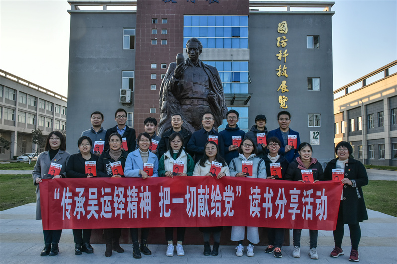 化工学院党总支书记孟龙首先介绍了吴运铎同志生平并指出,吴运铎同志是新中国兵器工业的开拓者,被誉为“中国的保尔·柯察金”。他撰写的自传体小说《把一切献给党》鼓舞了一代又一代青年人。孟龙号召同志们以吴运铎同志为榜样,学习他对党绝对忠诚、理想信念坚定的政治品格,不怕牺牲、甘于奉献的献身精神,为实现中华民族伟大复兴而努力奋斗。