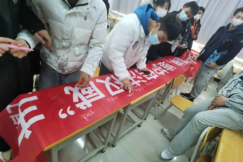 2021年12月3日早晨读活动直播结束后。人工智能学院开展宪法横幅签名活动,活动现场,学生干部们讲述了宪法日活动的重要意义以及在大学生中深入开展宪法宣传活动的重要