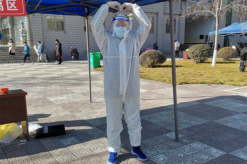 疫情当前无人后退,基础学子不言有畏。从场地布置到完成多轮核酸检测,“戴好口罩,间隔一米”,他们在人群之间穿梭不断提醒着、引导着。在需要他们的时候,毫不犹豫的穿上防护服,应声而动赶至需要帮助的地方,总以为他们还是孩子,如今已成长为一名防疫战士。