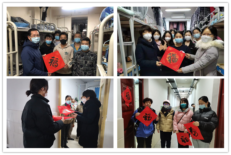 12月31日晚,在这意义非凡的跨年之夜,经济管理学院院长严长远、党总支书记王文雅、副院长王珊珊带领分院全体学生管理老师进入学生公寓,向宿管人员与学生送上“福”字和新年祝福,祝愿大家新年快乐,学业有成,期盼抗“疫”胜利,迎来健康平安,同学们也纷纷向老师送上新年祝福。