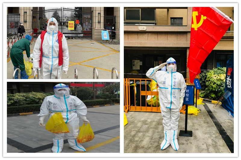 基础课学生党支部积极响应组织号召,闻令而动、冲锋在前,迅速组建以积极分子为主体的南校区志愿服务队,穿上防护服的他们成为疫情防控的卫士,为南校区全员核酸检工作的顺利完成提供有力保障;脱下防护服的他们又成为隔离区师生的“店小二”,每天做好隔离区师生的外围服务工作。