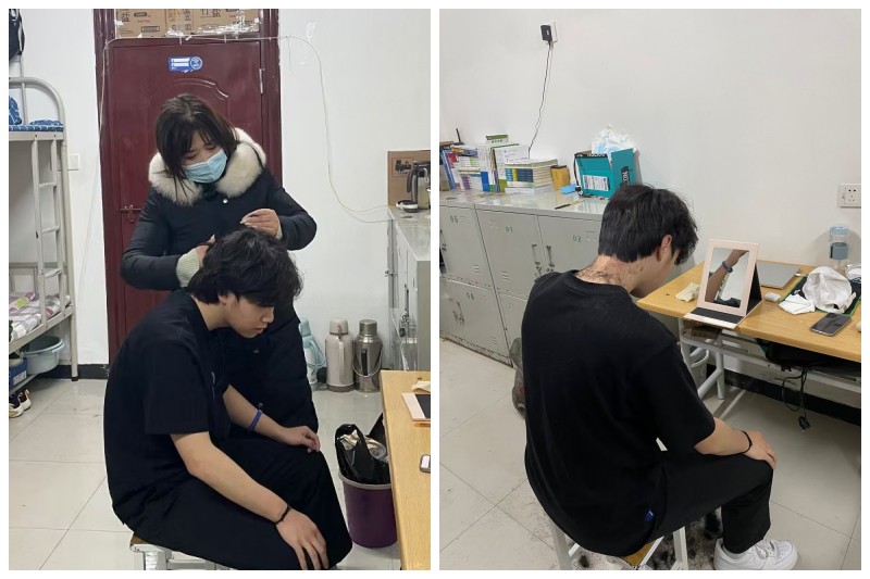 辅导员耿丹凤进公寓为学生理发,尽其所能解决同学们在生活中的困难,尽力做到使学生在封闭期间感受到家的温暖,感受到亲人一般的关怀。做好学生的良师益友一直是其工作的目标和追求,受到了同学们的一致认可。理发虽小,但很暖心。她表示,作为一名专职辅导员,学生就和自己的孩子一样,用心去交流,陪伴学生成长。在给学生理发的过程中,聊聊生活,谈谈学习,问问困恼,而学生让我最欣慰的就是微笑。